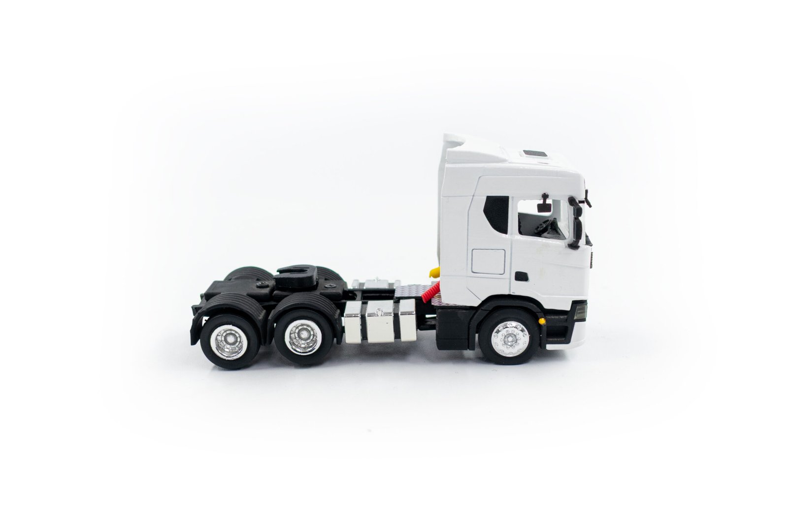 Miniatura de caminhão cavalo mecânico Scania, modelo R-500 6×4, em escala 1:50, fabricação nacional.