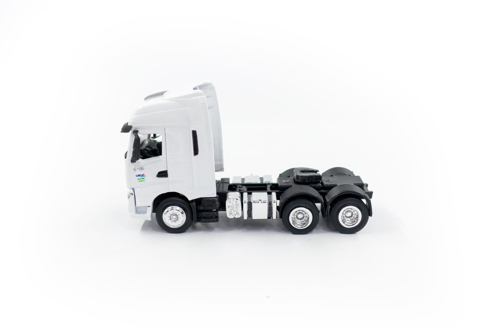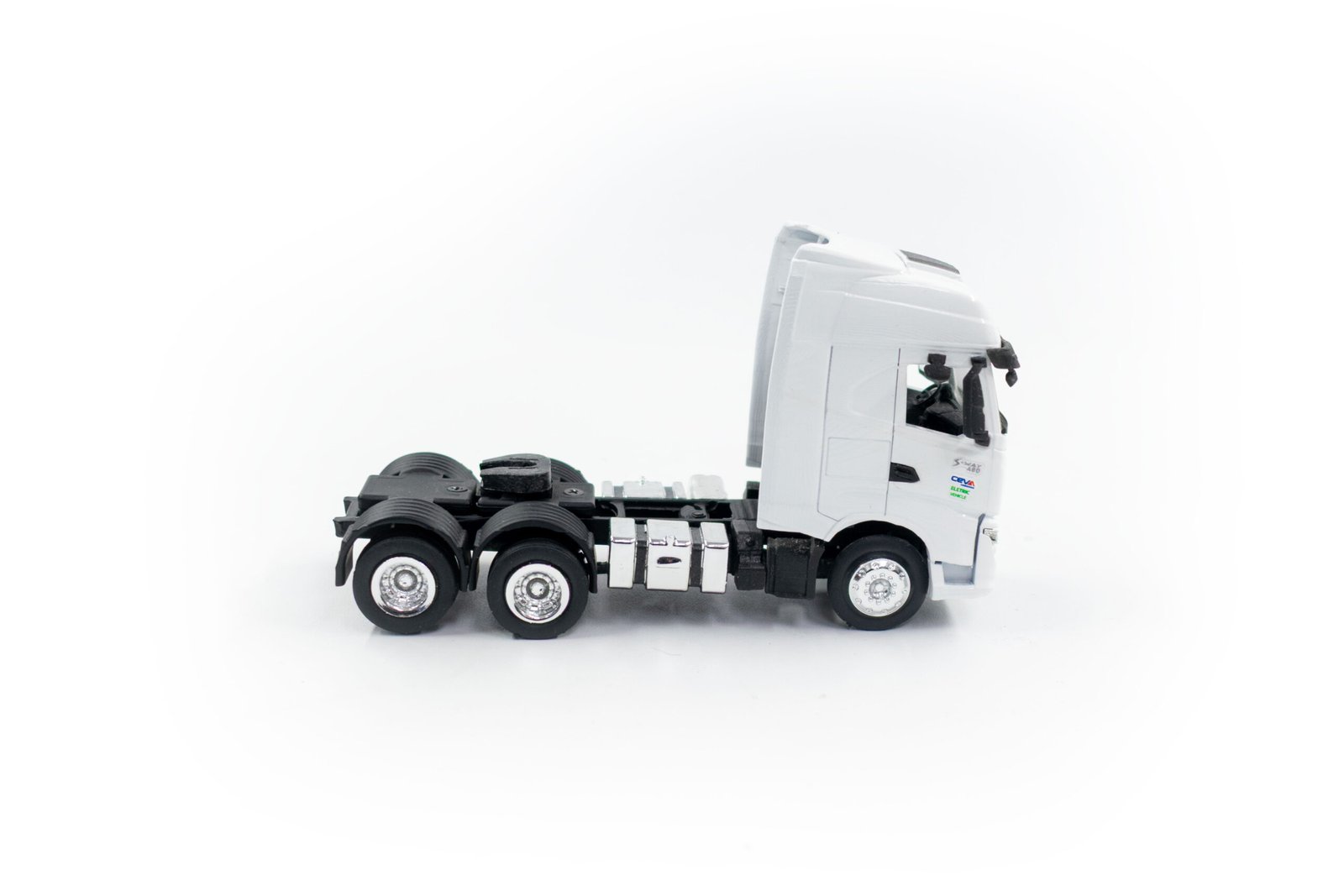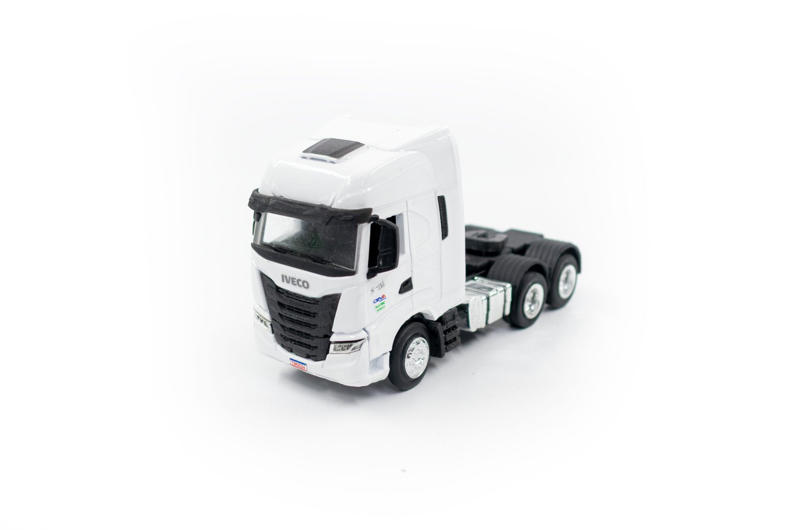 Miniatura de caminhão cavalo mecânico Volvo, modelo FH-540 6×4, em escala 1:50, fabricação nacional.